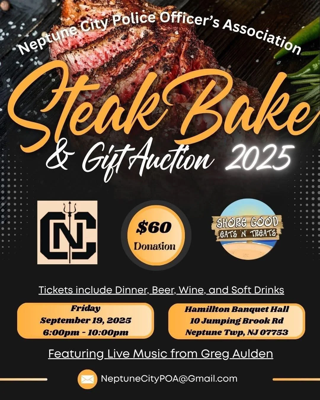 Upcoming events Check Out Local Community Events Presented By or Related to Our Member Police Associations Oct 30 Blue Mass - Newark Thursday, October 30, 2025 10:00 AM 3:00 PM Cathedral Basilica of the Sacred Heart (map) Google Calendar ICS View Event → Nov 15 12th Annual PBA #50 Food Drive Saturday, November 15, 2025 8:00 AM 12:00 PM STOP AND SHOP (map) Google Calendar ICS View Event → Sep 19 Neptune City Steak Bake Friday, September 19, 2025 6:00 PM 10:00 PM Hamilton Banquet Hall (map) Google Calendar ICS View Event → Sep 5 Patriot Night - Sea Girt Friday, September 5, 2025 4:00 PM 7:00 PM The Plaza (map) Google Calendar ICS View Event → Aug 5 Avon National Night Out 2025 Tuesday, August 5, 2025 5:00 PM 8:00 PM Avon Borough Hall (map) Google Calendar ICS View Event → Aug 5 Neptune National Night Out 2025 Tuesday, August 5, 2025 5:00 PM 8:00 PM Memorial Park (map) Google Calendar ICS View Event → Aug 5 SLH National Night Out 2025 Tuesday, August 5, 2025 5:00 PM 8:30 PM Joseph E. Robertson Park (map) Google Calendar ICS View Event → Aug 2 Spring Lake Summer BBQ & Touch a Truck Saturday, August 2, 2025 4:00 PM 9:00 PM Marucci Park (map) Google Calendar ICS View Event →