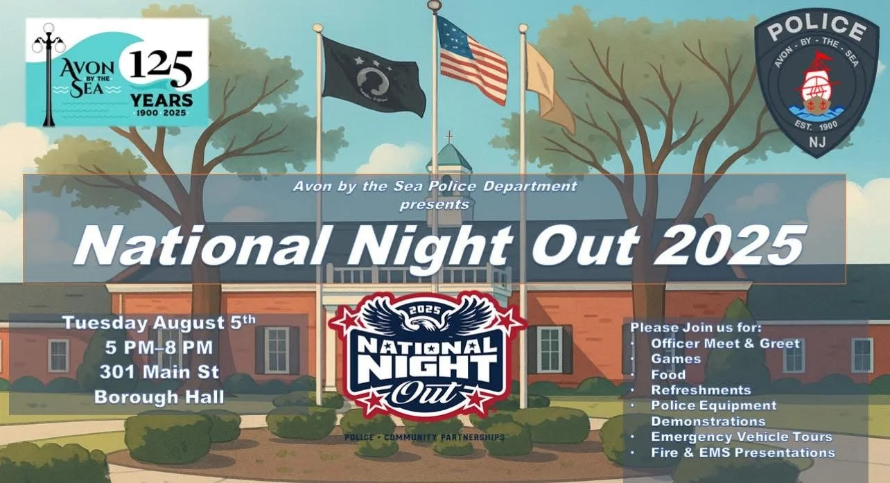 Aug 5 Avon National Night Out 2025 Tuesday, August 5, 2025 5:00 PM 8:00 PM Avon Borough Hall (map) Google Calendar ICS View Event →